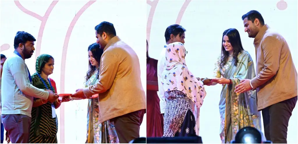 Adani Mangal Seva Sankalp: દિવા અને જીત અદાણીના લગ્નને એક વર્ષ પૂર્ણ થયું છે. લગ્ન સમયે કરેલા સંકલ્પને અનુસરતા દિવા અને જીત અદાણીએ પોતાના લગ્નની પ્રથમ વર્ષગાંઠની ઉજવણી દિવ્યાંગ મહિલાઓ સાથે કરી હતી. આ સાથે તેમણે નવવિવાહિત દિવ્યાંગ બહેનોને આર્થિક સહાય આપવાનો કરેલો સંકલ્પ પણ પાળ્યો હતો.