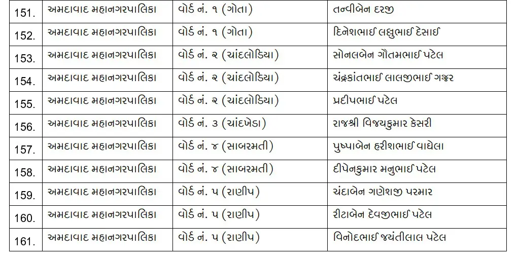 - ચાંદખેડા: રાજશ્રીબેન કેસરી (રિપીટ)
