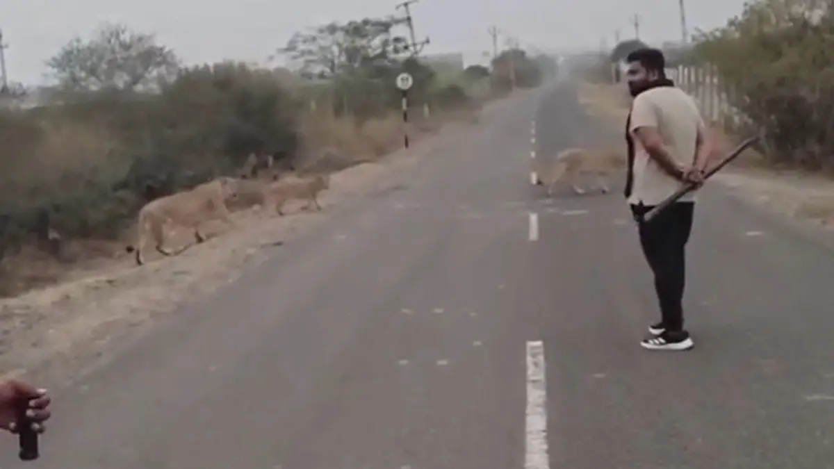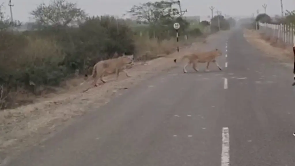 સ્ટેટ હાઇવે પર સિંહોના આ શાહી ટોળાનો રોડ ક્રોસિંગ કરતો અદ્ભુત વીડિયો સામે આવ્યો છે. પ્રકૃતિપ્રેમીઓ અને સ્થાનિક લોકોમાં આ નજારો ચર્ચાનો વિષય બન્યો છે. સિંહોની આ શિસ્તબદ્ધ ચાલ અને વનવિભાગનું સંકલન જોઈ લોકો વનતંત્રની કામગીરીના વખાણ કરી રહ્યા છે.