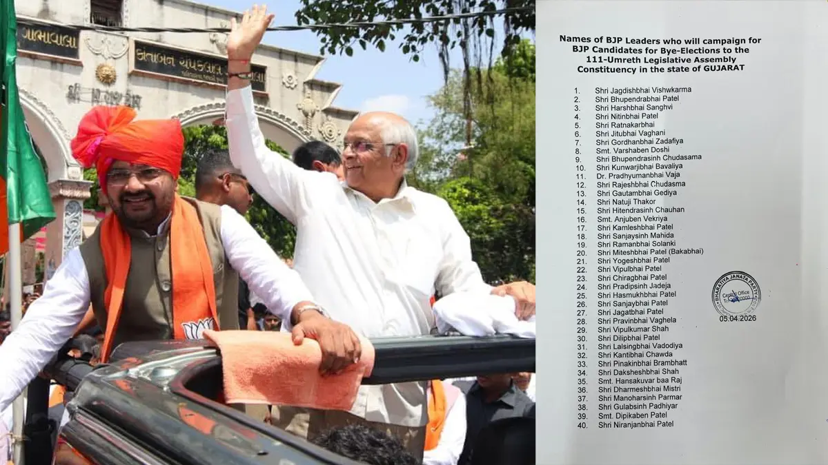Umreth Assembly By-Election 2026: ઉમેરઠ વિધાનસભા બેઠક પર પેટા ચૂંટણી હાથ ધરવામાં આવી રહી છે. સ્થાનિક સ્વરાજ્યની ચૂંટણી પણ આ જ મહિનામાં યોજાઇ રહી છે. ત્યારે રાજ્યમાં રાજકીય માહોલ જામ્યો છે. ઉમરેઠ વિધાનસભા મતવિસ્તારની પેટાચૂંટણી માટે સ્ટાર પ્રચારકોની યાદી બહાર પાડવામાં આવી છે. આ બેઠક પર ભાજપના ઉમેદવારને વિજયી બનાવવા માટે 40 જેટલા દિગ્ગજ નેતાઓ પ્રચાર મેદાને ઉતરશે.