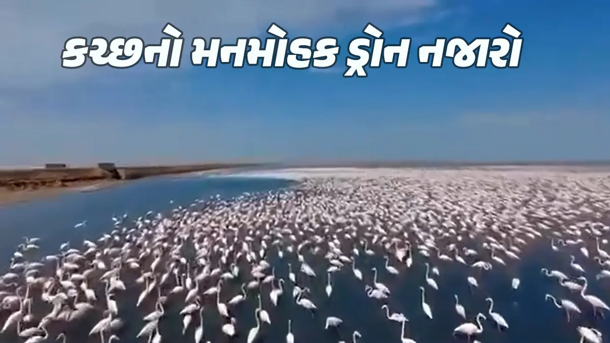 ગુજરાતના કચ્છમાંથી પ્રકૃતિની સુંદરતા અને સંવાદિતાનો એક અત્યંત મનમોહક નજારો નાયબ મુખ્યમંત્રી હર્ષ સંઘવી દ્વારા શેર કરવામાં આવ્યો છે. ડ્રોન કેમેરા દ્વારા લેવામાં આવેલા એક શાનદાર દ્રશ્યમાં હજારોની સંખ્યામાં ફ્લેમિંગો (સુરખાબ) પક્ષીઓ એકસાથે વિહરતા જોવા મળી રહ્યા છે. આ નજારો એટલો અદભુત અને રોમાંચક છે કે તેને જોતાં જ એવું લાગે છે કે જાણે કુદરતે પોતાના હાથે જમીન પર કોઈ જીવંત મહાકાવ્ય અથવા સુંદર પેઇન્ટિંગ બનાવી દીધું હોય.