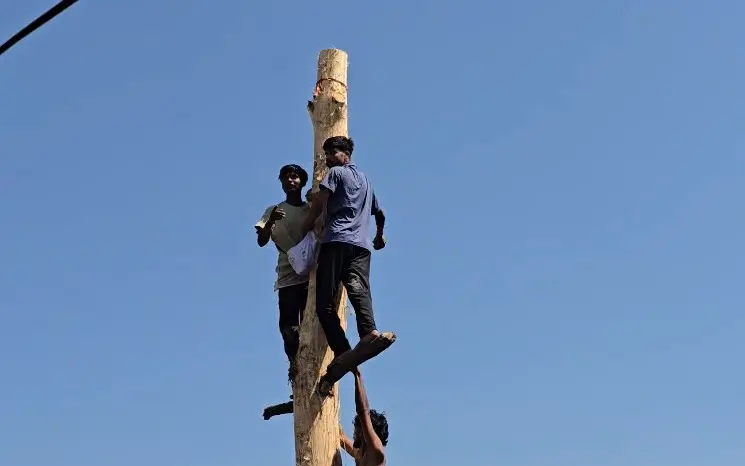 આ થડને લપસણું બનાવવા માટે તેની છાલ કાઢી નાખવામાં આવી હતી, જેથી તેના પર ચઢવું અત્યંત મુશ્કેલ બને. થડની ટોચ પર ગોળથી ભરેલી પોટલી બાંધી દેવામાં આવી હતી, જેને મેળવવા માટે યુવકો વચ્ચે રોમાંચક સ્પર્ધા જોવા મળી.