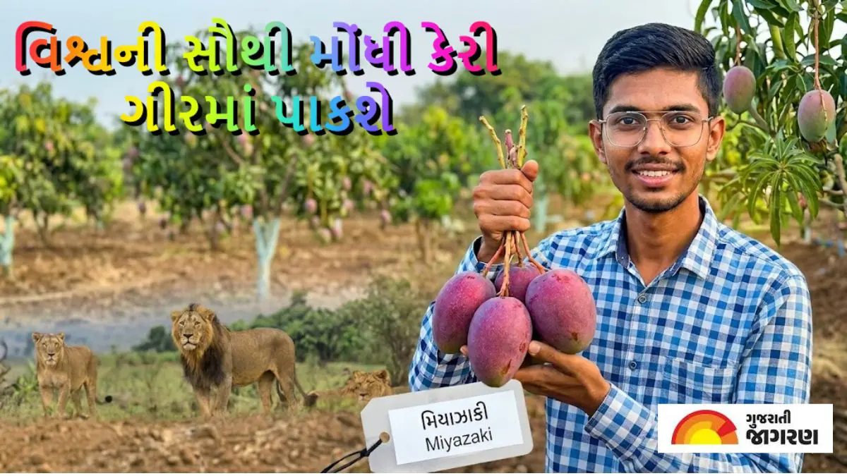 Miyazaki Mango in Gir: ગીર સોમનાથ અને જૂનાગઢ જિલ્લો વર્ષોથી પોતાની પ્રખ્યાત 'કેસર' કેરી માટે વિશ્વભરમાં જાણીતો છે. પરંતુ હવે ગીરની આ ઓળખમાં એક નવું અને કિંમતી ઘરેણું ઉમેરાયું છે. ભાલચેલ ગામના યુવાન અને પ્રગતિશીલ ખેડૂત સુમિત જારીયાએ પોતાના 'અનિલ મેંગો ફાર્મ'માં જાપાનની સર્વશ્રેષ્ઠ અને વિશ્વની સૌથી મોંઘી 'ઈરવીન મિયાઝાકી' કેરીના આંબાનું સફળ વાવેતર કર્યું છે.
