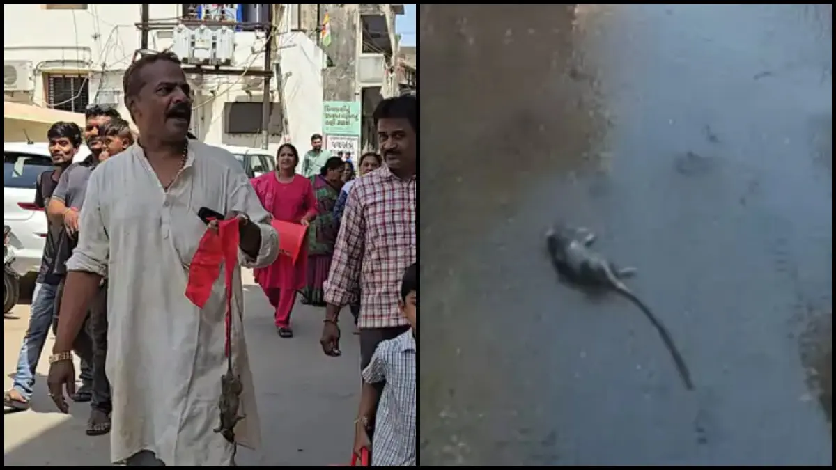 ખેડા જિલ્લાના નડિયાદ તાલુકાનાં પીજ ગામમાં પાછલા 5 દિવસથી લોકો પીવાનાં પાણી માટે વલખા મારી રહ્યા છે. ગામમાં પાણીની તકલીફને લીધે લોકો પરેશાન થઈ ગયા છે. તેવામાં પંચાયતે મોકલેલા પાણીના ટેન્કરમાં મરેલો ઉંદર નીકળતા લોકો ચોંકી ઉઠ્યા હતા. ઘટનાથી રોષે ભરાયેલા લોકોએ મરેલા ઉંદરની અંતિમ યાત્રા કાઢીને પંચાયત કચેરી ખાતે વિરોધ પ્રદર્શિત કર્યો હતો.તેમજ પાણીની સમસ્યા અંગે સવાલો ઉઠાવ્યા હતા,