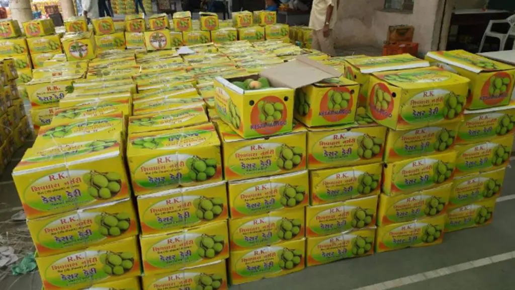 ગોંડલ યાર્ડમાં હાફુસ કેરીના 144 બોક્સની આવક થઈ હતી.