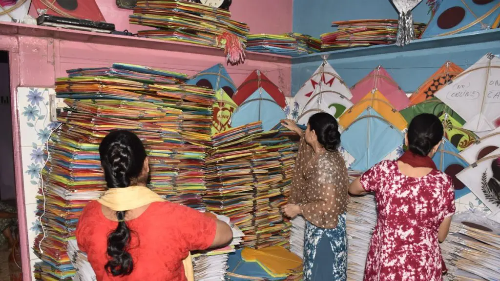 આ દરેક કામ અલગ અલગ લોકો પોતાની કુશળતાથી કરે છે. એક પતંગ બનાવવા અંદાજિત 20 મિનીટ અને 8-10 લોકો જોઈએ છે. અમે બહેનોએ આ વર્ષે અંદાજિત 60 થી 70 હજાર પતંગ બનાવી છે, જેમાં મુખ્યત્વે 27 અને 37 સે.મીના સાડી સત્તાવીસ ચીલ, ચોત્રીસ પોણીયા, સાડત્રીસ અડદિયા, રોકેટ અને પ્રિન્ટવાળી સહિતની પતંગની અન્ય વેરાઈટી વધુ લોકપ્રિય છે.