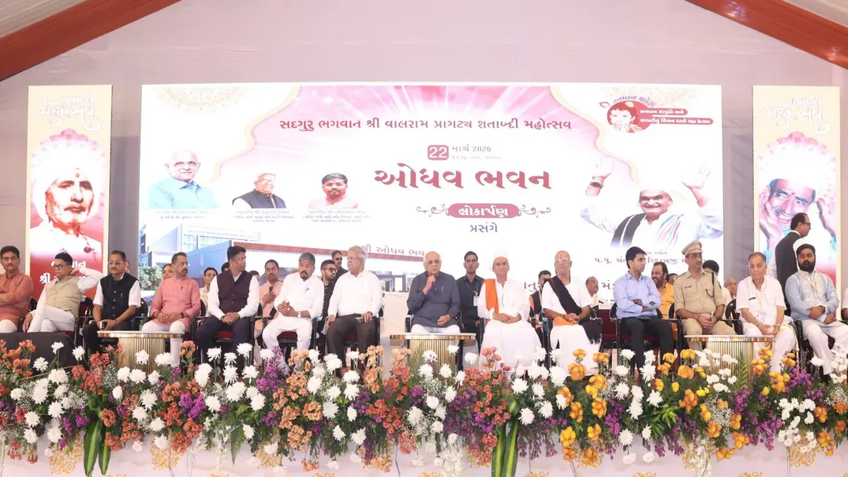 Valsad Shri Odhav Bhavan: મુખ્યમંત્રી ભૂપેન્દ્ર પટેલે વલસાડ ખાતે કચ્છી ભાનુશાલી સમાજ દ્વારા નિર્મિત 'શ્રી ઓધવ ભવન'નું ભવ્ય લોકાર્પણ કર્યું છે. આ કાર્યક્રમ સદગુરુ ભગવાન શ્રી વાલરામ પ્રાગટ્ય શતાબ્દી મહોત્સવના પાવન અવસરે યોજવામાં આવ્યો હતો. આ ઐતિહાસિક ક્ષણને વધાવવા માટે આકાશમાંથી હેલિકોપ્ટર મારફતે કેસરી ગુલાલ અને પુષ્પોની વર્ષા કરવામાં આવી હતી.