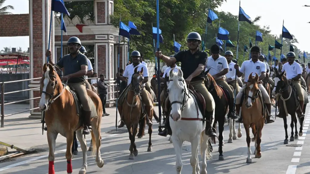 PM Modi Somnath Swabhiman Parv in Gujarat: વડાપ્રધાન નરેન્દ્ર મોદીના અધ્યક્ષ સ્થાને યોજાનાર સોમનાથ સ્વાભિમાન પર્વ અંતર્ગત તારીખ 11 જાન્યુઆરીના રોજ ભવ્ય શોર્ય યાત્રા યોજાશે. આ શોર્ય યાત્રામાં પારંપરિક વેશભૂષામાં ગુજરાત પોલીસ અશ્વદળના 108 ઘોડે સવારો ભાગ લેશે. શક્તિના પ્રતીક સમાન અશ્વ અને સોમનાથનું સ્વાભિમાન એક કેડીએ બલિદાન અને શૌર્યતાના ઇતિહાસને પુનર્જીવિત કરશે. આ શોર્ય યાત્રામાં ભાગ લેવા માટે ગુજરાત પોલીસ અશ્વદળના 15 જિલ્લાના અશ્વ અને અસવાર સોમનાથ ખાતે આવી પહોંચ્યા છે.