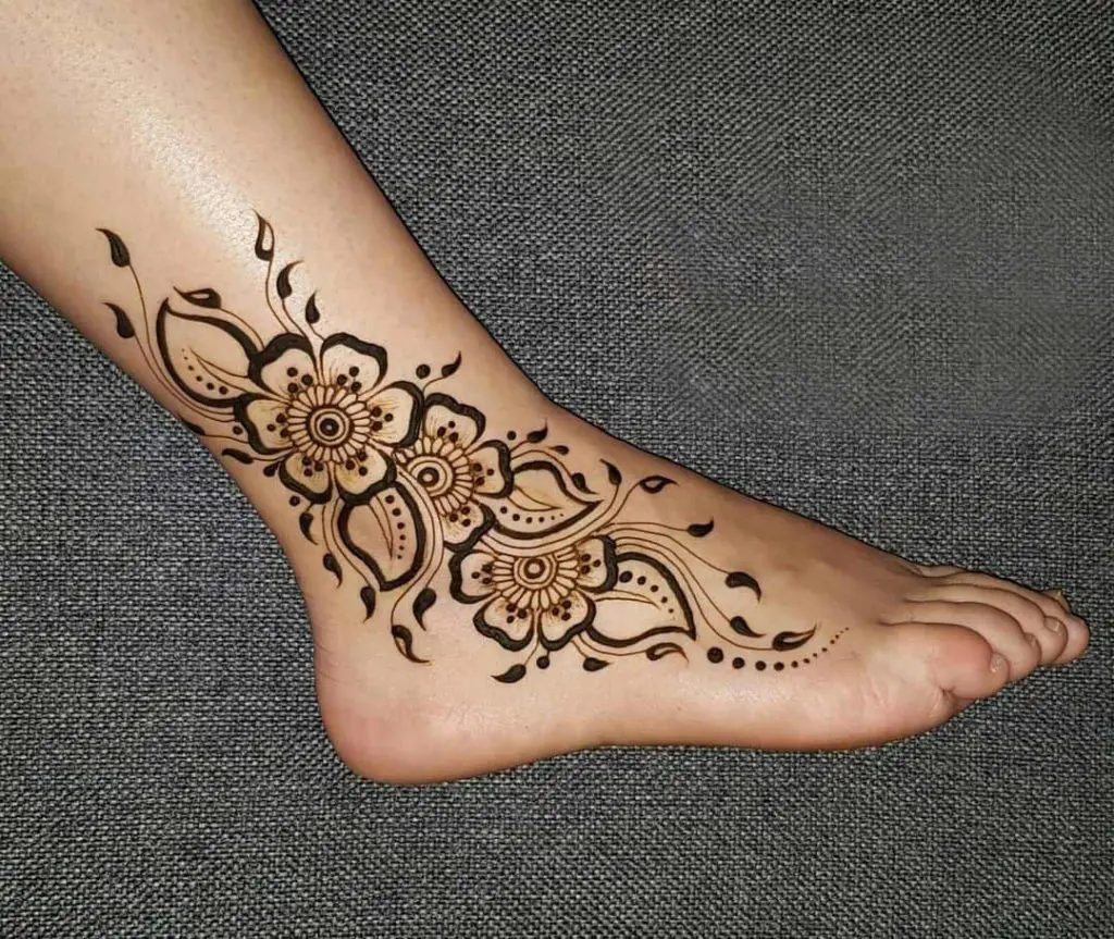 જો તમે તમારા પગ પર આધુનિક દેખાતી મહેંદી ડિઝાઇન બનાવવા માંગતા હોય, તો તમે તમારા પગની બાજુમાં ફૂલ-પાંદડા આકારનું અથવા અરબી-શૈલીનું મહેંદી ટેટૂ બનાવી શકો છો. આ માટે, ઘેરા રંગની મહેંદી ડિઝાઇન પસંદ કરવાનો પ્રયાસ કરો.